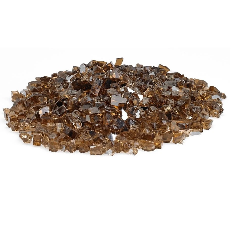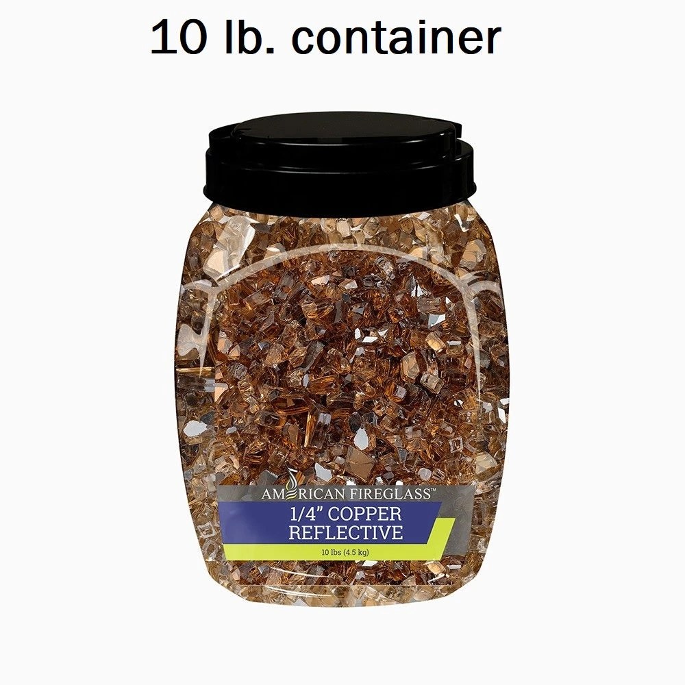Our ¼” Copper Fire Glass is not just gorgeous to behold, but also very practical. It does a great job of covering the entire floor of a fire feature, effectively hiding the unseemly pipes and tubes that are sometimes visible in gas fireplaces and fire pits. This makes fire glass a more desirable alternative to the more commonly seen ceramic logs and fire stones. This reflective fire glass is tempered in order to withstand temperatures of up to 1300° Fahrenheit and harsh weather without losing its color or shape.