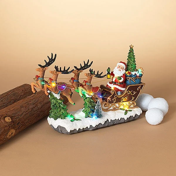 Santa Claus is taking off in his sleigh led by his team of reindeer! An amusing whimsical Christmas decoration, this accent piece is sure to light up any room.