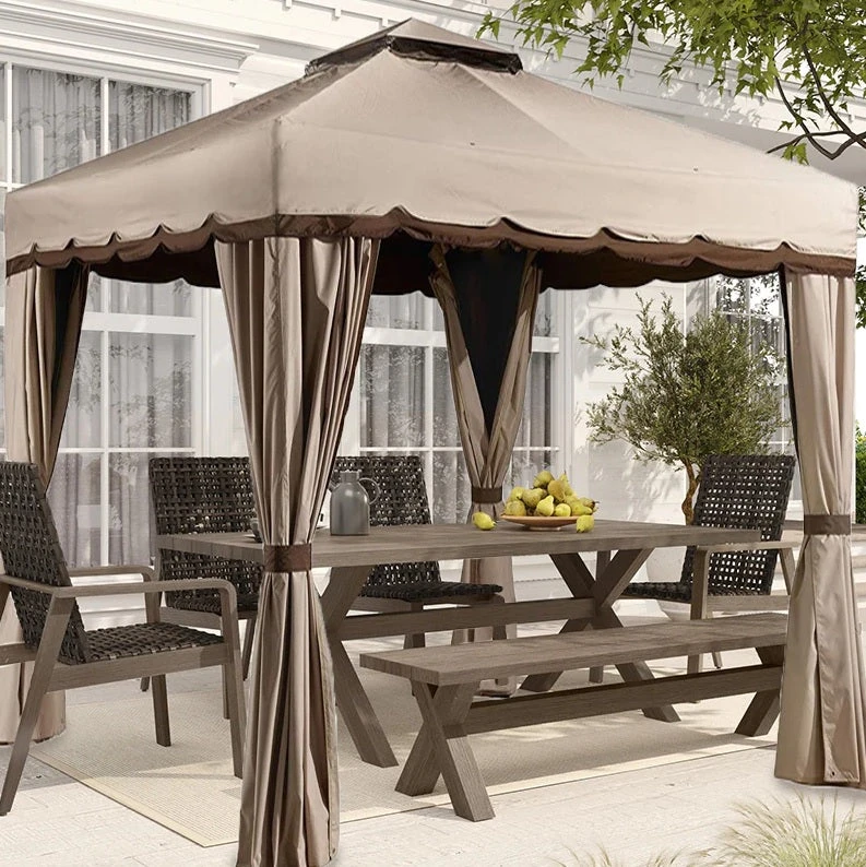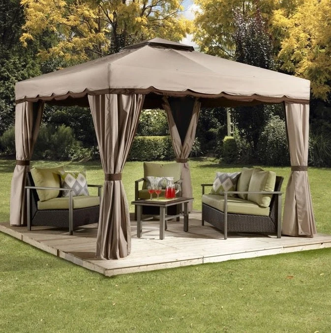 Revamp your outdoor living space with the Rivel Soft Top Gazebo by Sojag. It features a tasteful beige polyester roof with matching curtains designed to shield you from the hot sun on long summer days or keep you dry on a rainy afternoon. The high quality curtains can provide more intimacy and privacy while also adding an extra level of sun protection.