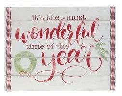 - One reads “It’s the most wonderful time of the year” and features a wreath and some holly leaves