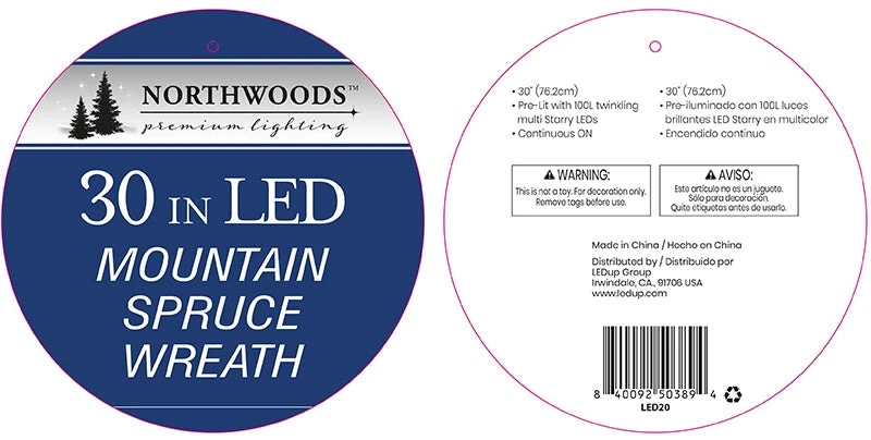 Welcome guests to your home with our 30″ Mountain Spruce LED Wreath. This wreath would look perfect displayed on doors, walls and windows.