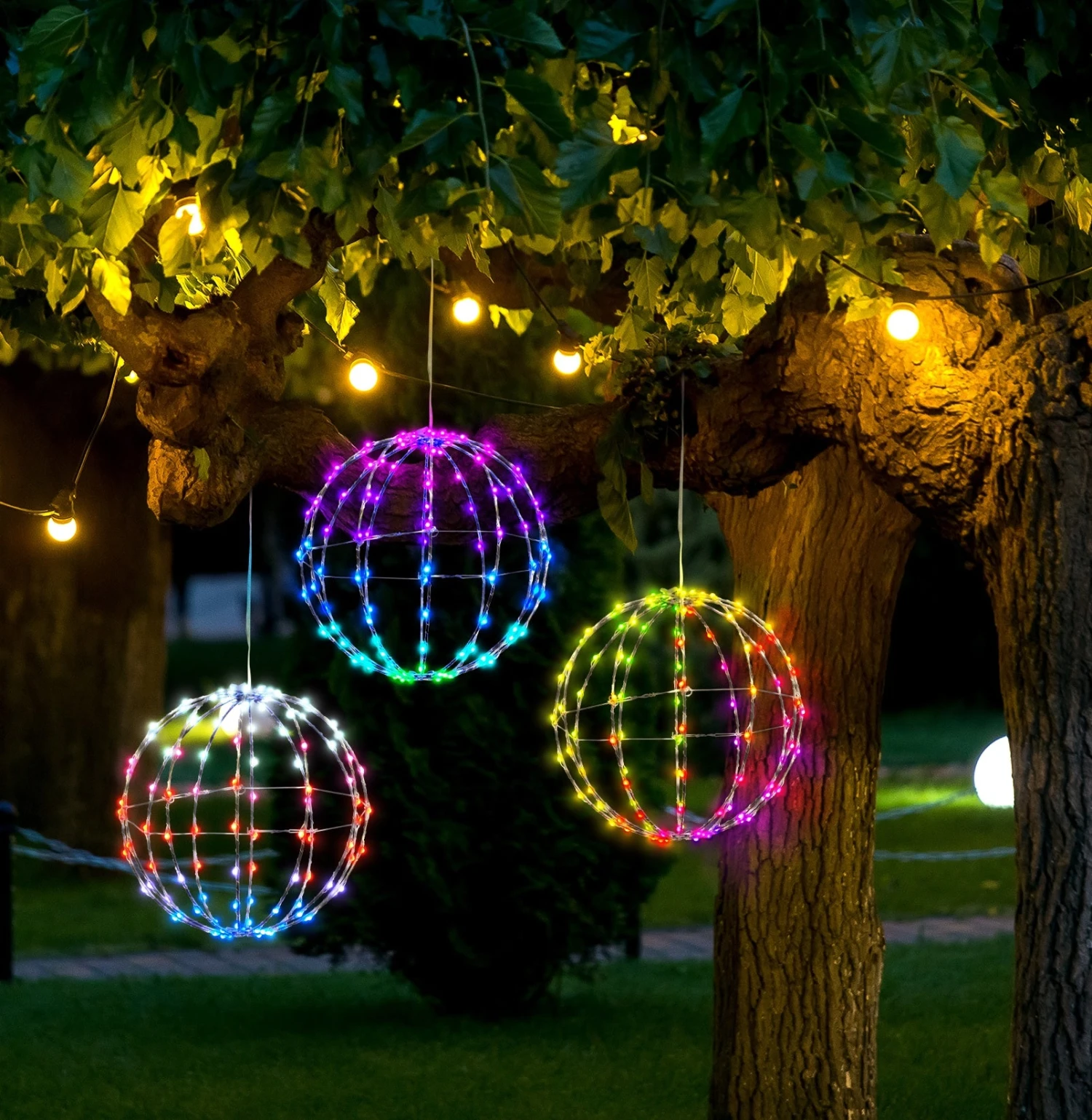 Decorate your yard and home with our 3D Foldable LED Sphere. This ornament features multi-colored LED lights and is an eye-catching design for the festive Christmas season. It makes a great addition to enhance your indoor or outdoor scenery with its attractive LED lights that provide a beautiful, dazzling display at night.Â