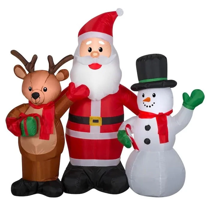 Deck the yard with our 4′ LED Airblown® Inflatable North Pole Friends! Featuring Santa, a reindeer and a snowman, and accented with a present and a candy cane, this seasonal inflatable makes an eye-catching addition to your outdoor Christmas decorations. Setup is super simple. Just plug it in and watch the magic unfold!