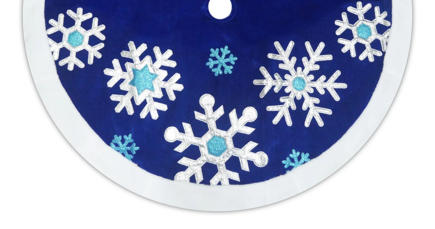 Add this bright and festive Snowflake Christmas Tree Skirt to your Christmas decorations. Just imagine the amazing effect of this skirt peeking between the mounds of gifts and presents piled up under the tree.