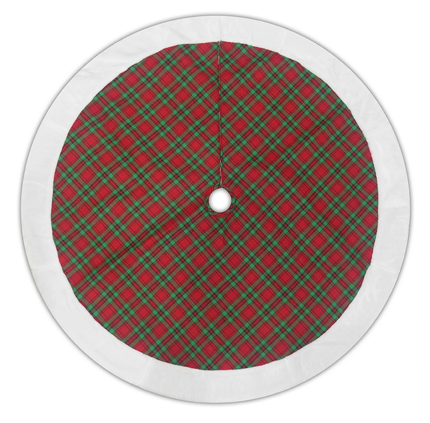 The center of this classic Christmas Tree Skirt is comprised of red and green plaid and is accented by a bright, white trim. Show your Christmas spirit by decorating your home, yard, or office with this rustic farmhouse Christmas décor!