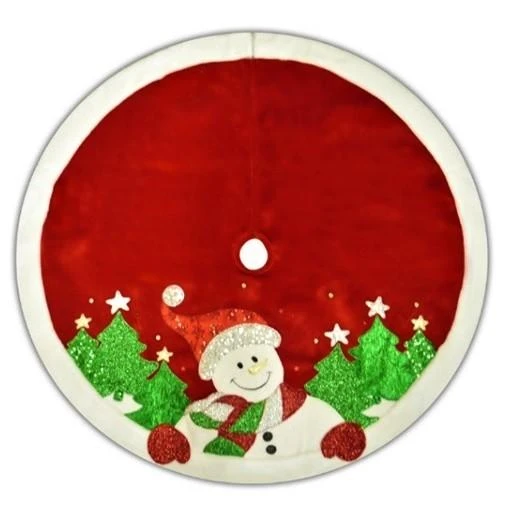You and your family will love seeing this wonderful wintertime 48″ Red Velvet Metallic Embroidered Snowman Christmas Tree Skirt with Faux Fur Border underneath your Christmas tree all season long.