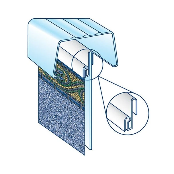 - Hanger fits on top of pool wall to provide a beaded liner receiver