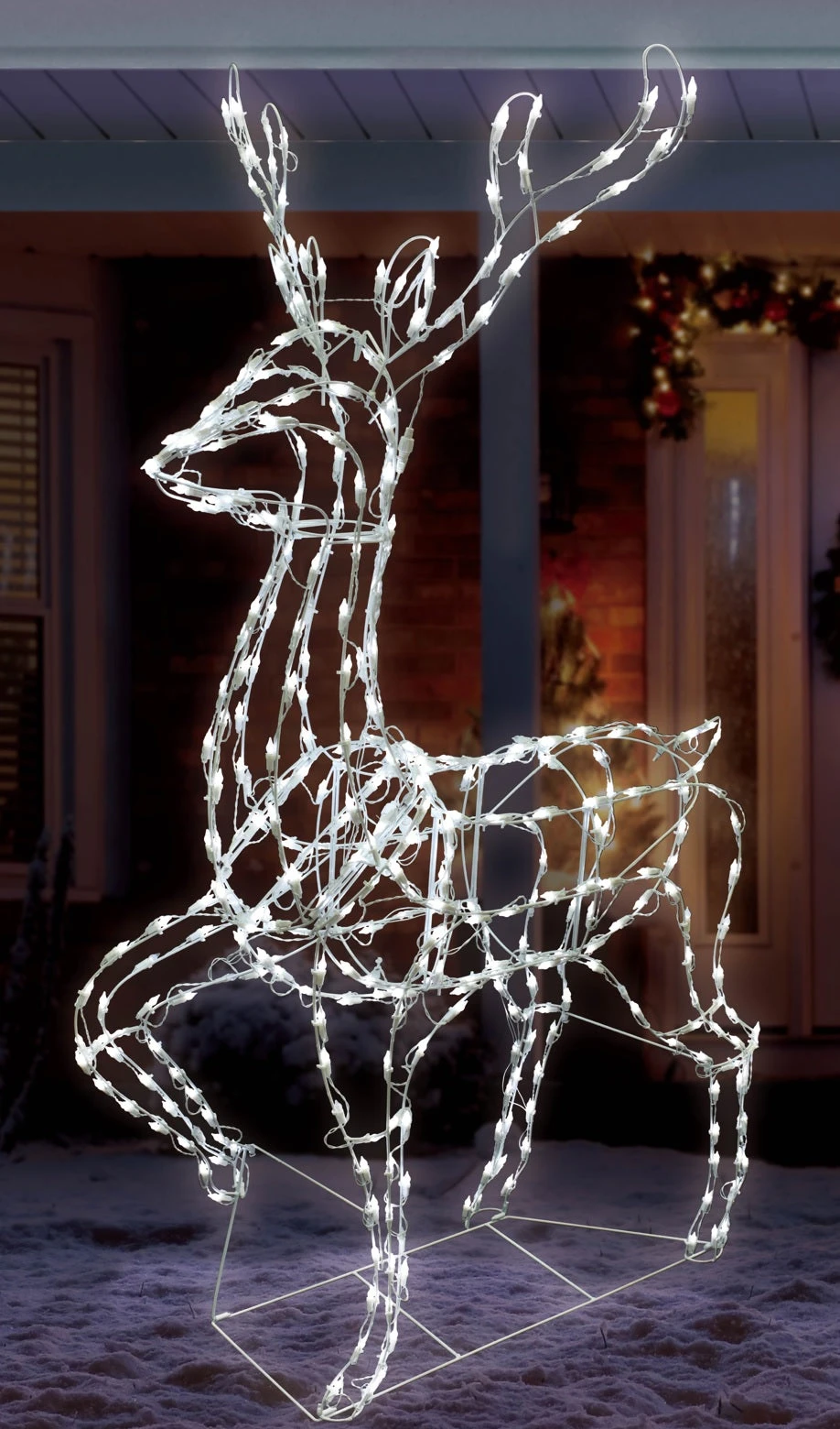 This 67″ Pre-Lit Elegant Buck Sculpture will illuminate your holiday with its pure white twinkling lights! These lights will continue to stay on even if a bulb burns out, is loose or is missing, making this the perfect, effortless yard decoration.