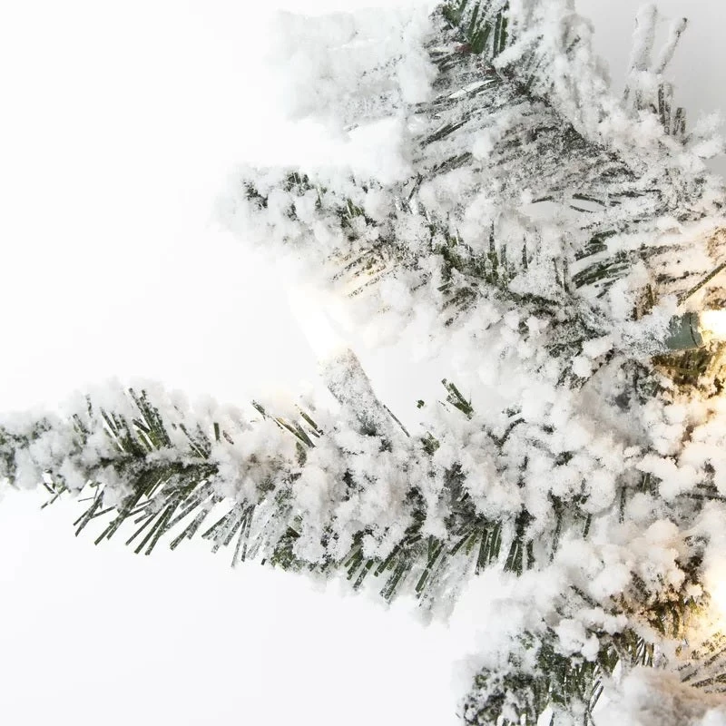 Revel in the magic of a white Christmas – but skip the maintenance and cleanup with our lush 7.5′ Pre-Lit Narrow Snowy Vermont Flocked Pencil Pine Tree. True to its name, its slim silhouette and pre-flocked features will automatically give your holiday look a fresh-from-the-forest feeling.