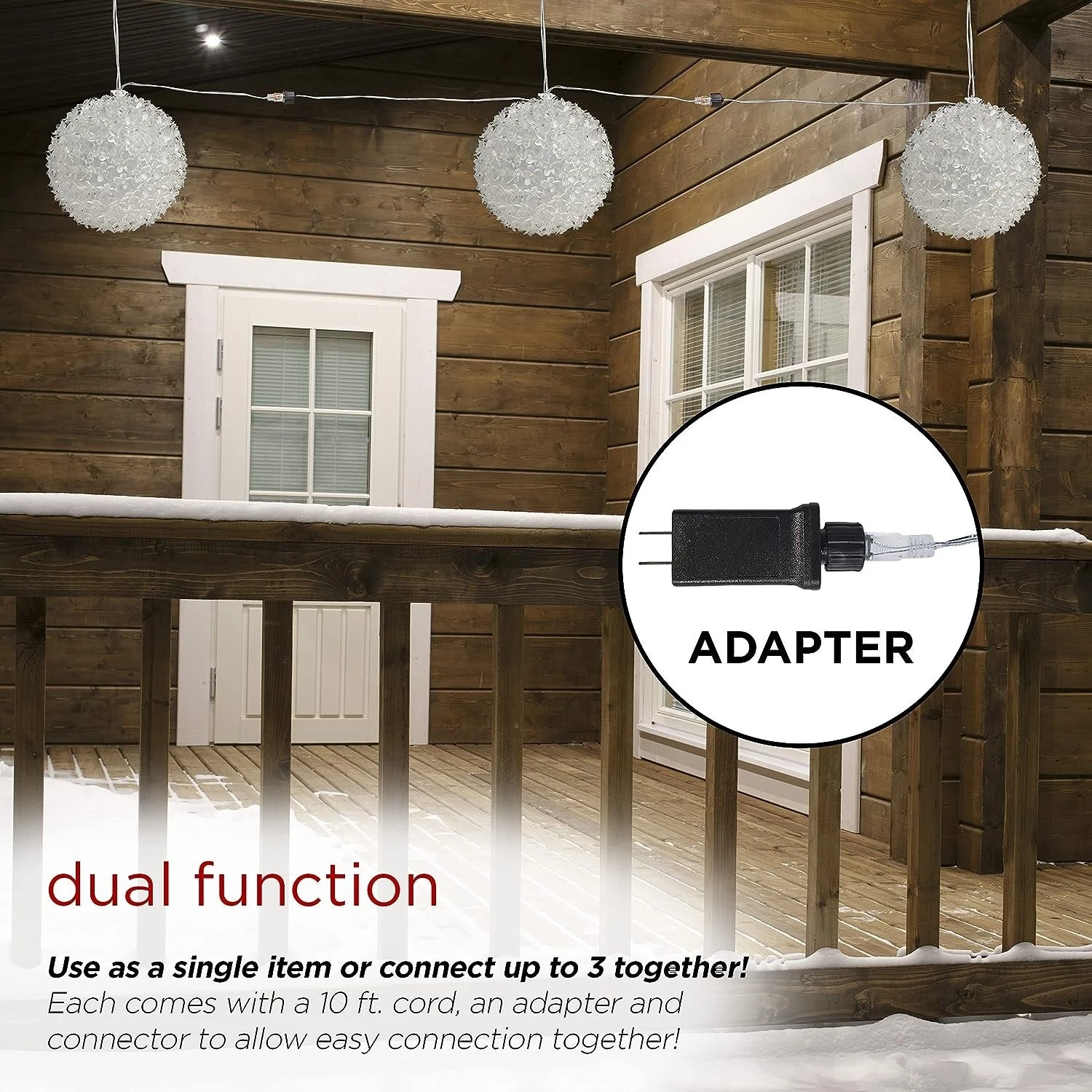 This stunning LED Sphere Decoration makes a great addition to your indoor or outdoor scenery with its bright lights that provide a beautiful, twinkling display at night. Setup is easy – simply hang it on your Christmas tree or hook it at an elevated height for a stunning decoration.