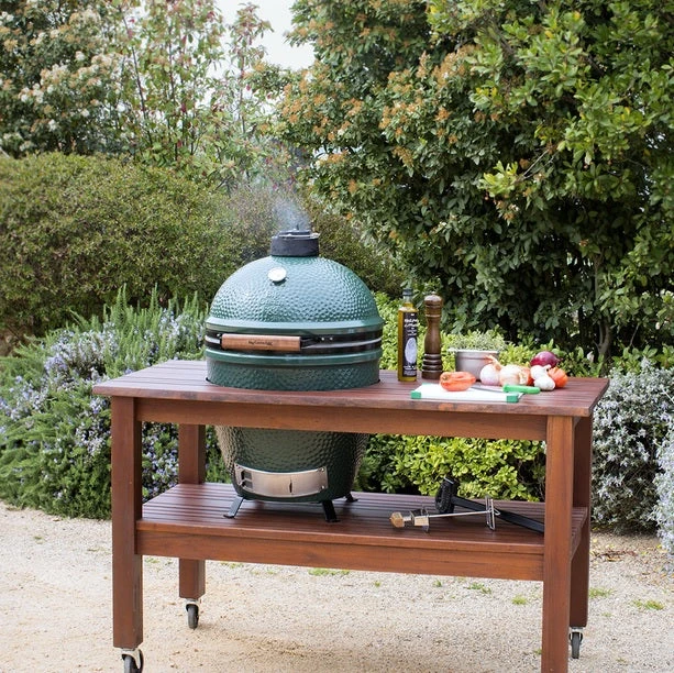 - Big Green Egg’s unique Tropical Mahogany Hardwood Tables are handcrafted to the highest quality standards