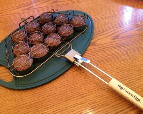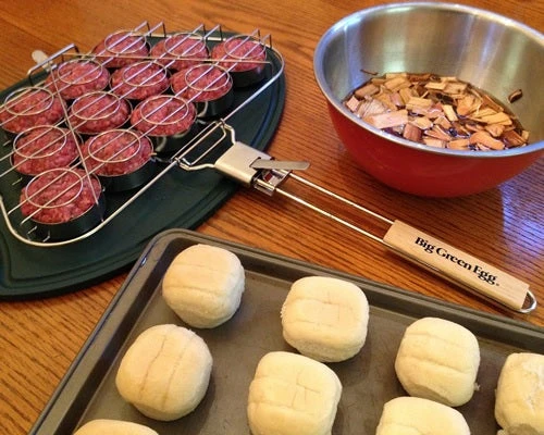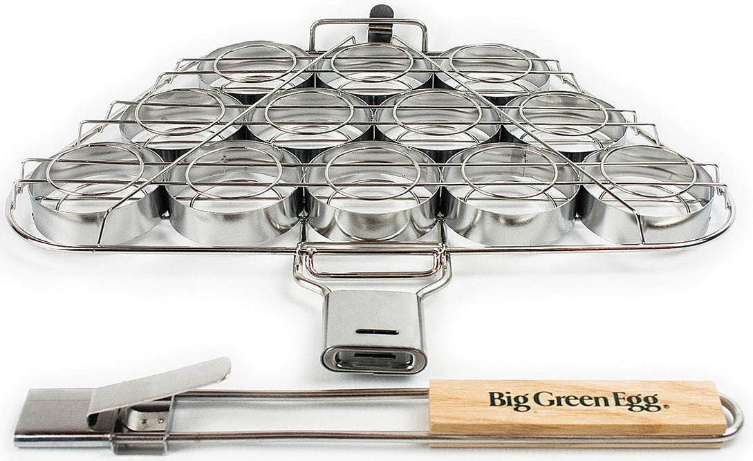 Expand your culinary horizons with the Big Green Egg Mini Burger Slider Basket. Don’t worry about keeping up with a hungry crowd; the basket makes it easy to cook twelve patties to perfection!