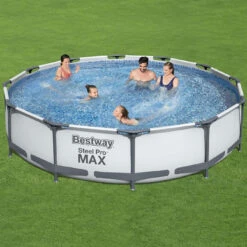 Bestway gives you the most cost effective way to bring a durable, long-lasting swimming pool to your backyard. The Steel Pro 12′ x 30″ Frame Above Ground Swimming Pool sets up in 60 minutes or less and includes everything you need to begin your swimming fun. With proper maintenance and care your Steel Pro frame above ground pool will give you years of enjoyment. The strong and rust resistant metal frame pools are wrapped with heavy duty PVC and polyester 3-ply walls.