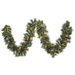 9′ Classic Spruce Pre-Lit Garland With Frosted Tips, Berries And Pine Cones