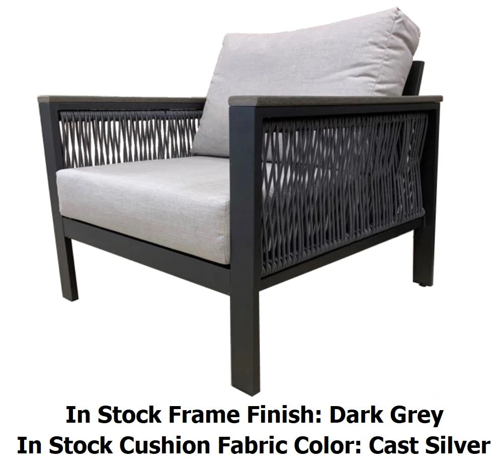 - Features rope-like, mixed gray poly-flex material highlighting the arms and back, adding comfort and design