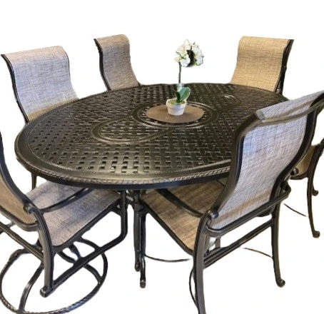 - Round Grand Terrace Table: 54″ D x 54″ W x 29″ H