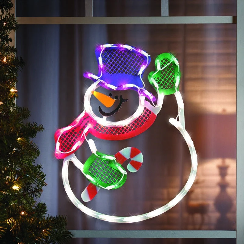 Light up your home this holiday season with this Pre-Lit Snowman Window Silhouette. It is the perfect way to spruce up your décor with very little work. Simply attach the suction cup to a window, place the silhouette on the suction cup and it’s time to celebrate!