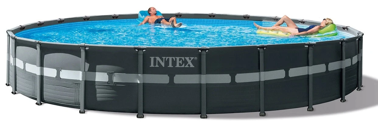 Enhance your backyard this summer with the Intex® Ultra XTR™ Frame 24ft x 52in Pool that features beautiful blue tile print and elegant graphite exterior. Have an amazing time with family and friends with the spacious pool.