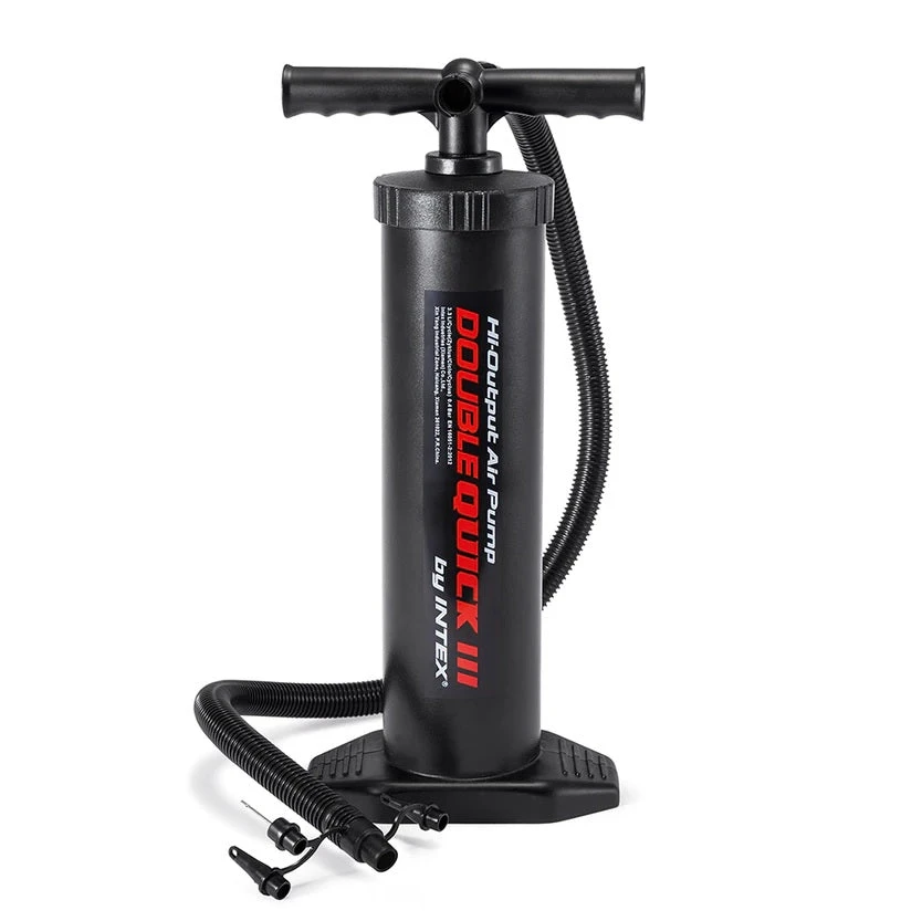 Don’t have an electrical outlet? Don’t worry! The Intex Hi-Output Manual Hand Pump can get the job done. This pump inflates as well as deflates and pumps air on both up and down strokes. Includes accordion hose with 3 nozzles and a needle to fit small, medium and large air valves.