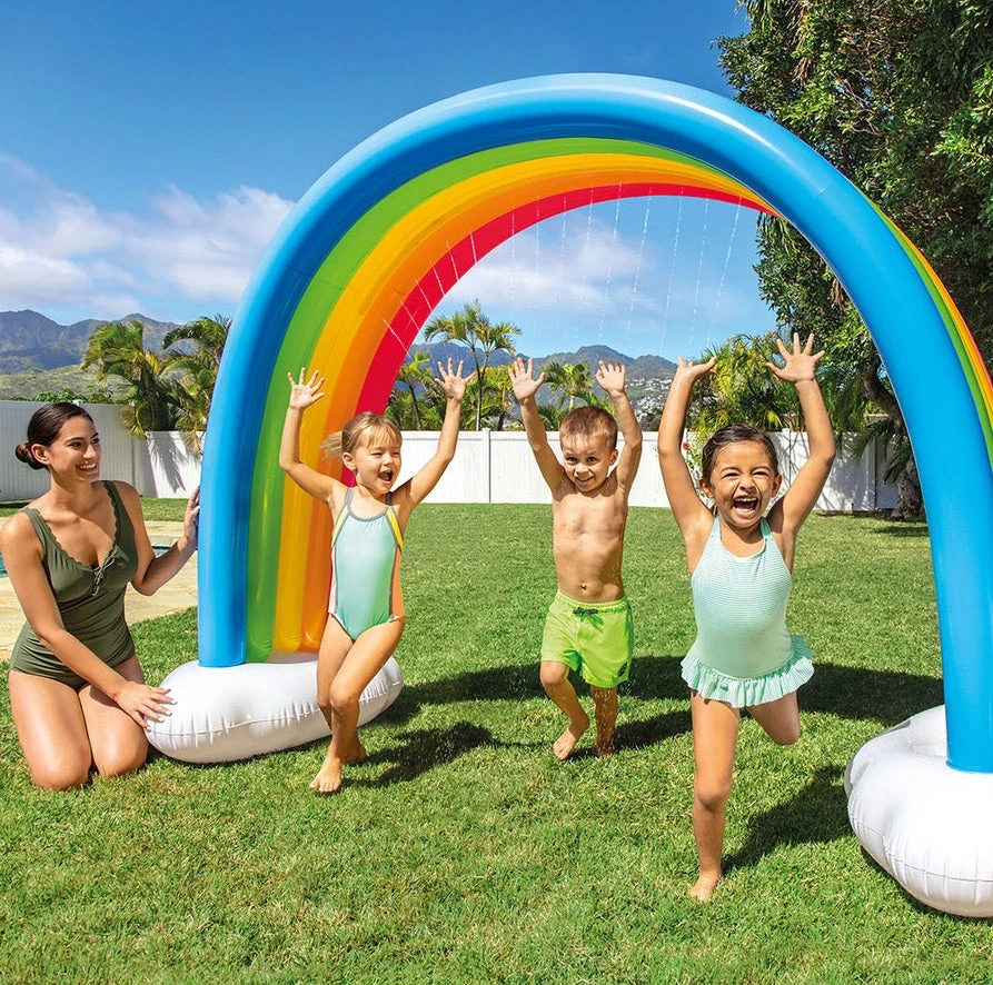 Help your kiddos beat the heat this summer and let them enjoy a relaxing time inside the magical Intex Inflatable Rainbow Cloud Sprinkler. The water sprinkles from the archway, making it fun for kiddos to run through. Perhaps you don’t have a large pool or just want to get your toddler some safe, sun time. If so, this is the perfect sprinkler for you and your family.