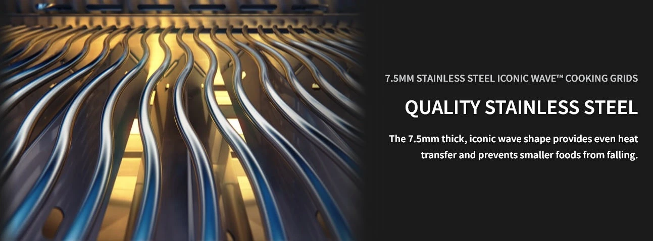 - Features the Iconic 7.5mm WAVE™ cooking grids for those distinctive sear marks