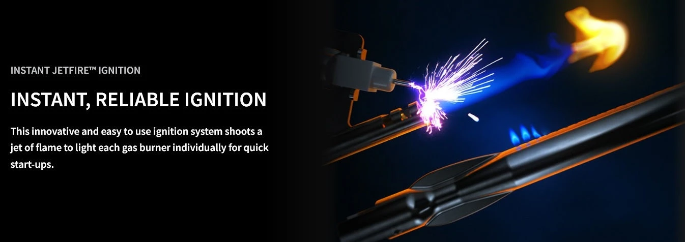 - Instant JetFire™ Ignition: Innovative and easy to use ignition system shoots a jet of flame to light each gas burner individually for quick start-ups