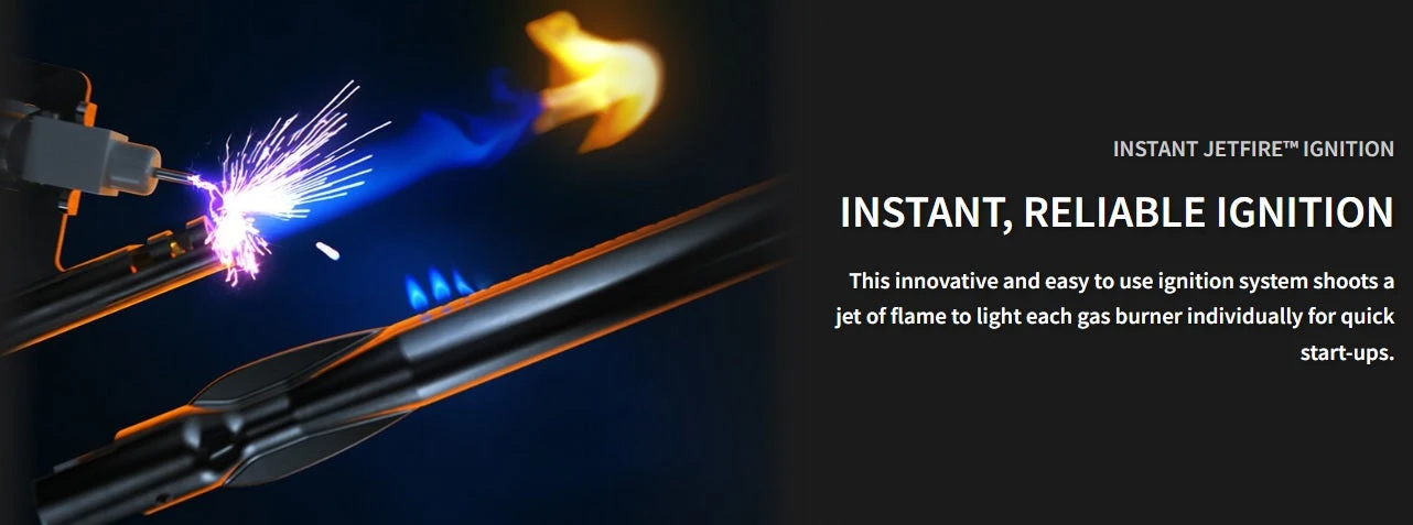 - Instant JetFire™ Ignition shoots a jet of flame to light each gas burner individually for quick start-ups