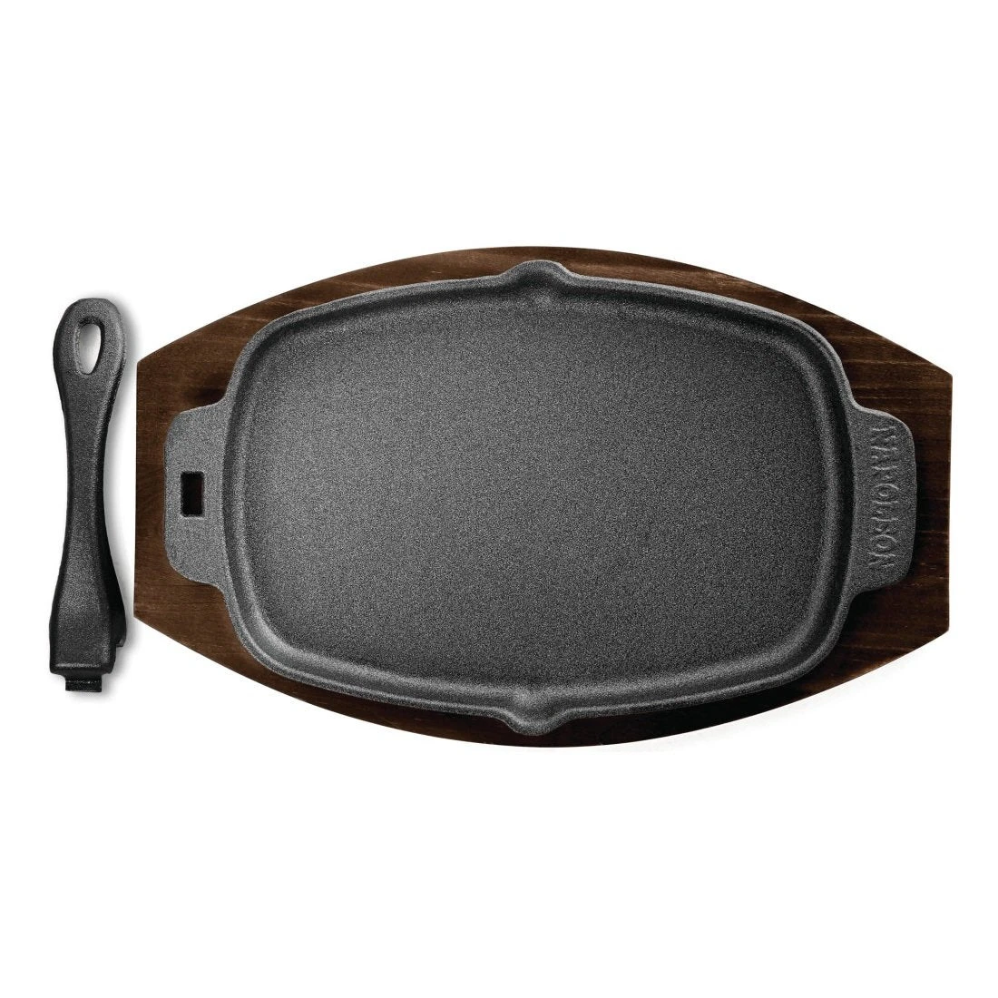 - Comes with its own custom fit wooden server for the deep cast iron platter