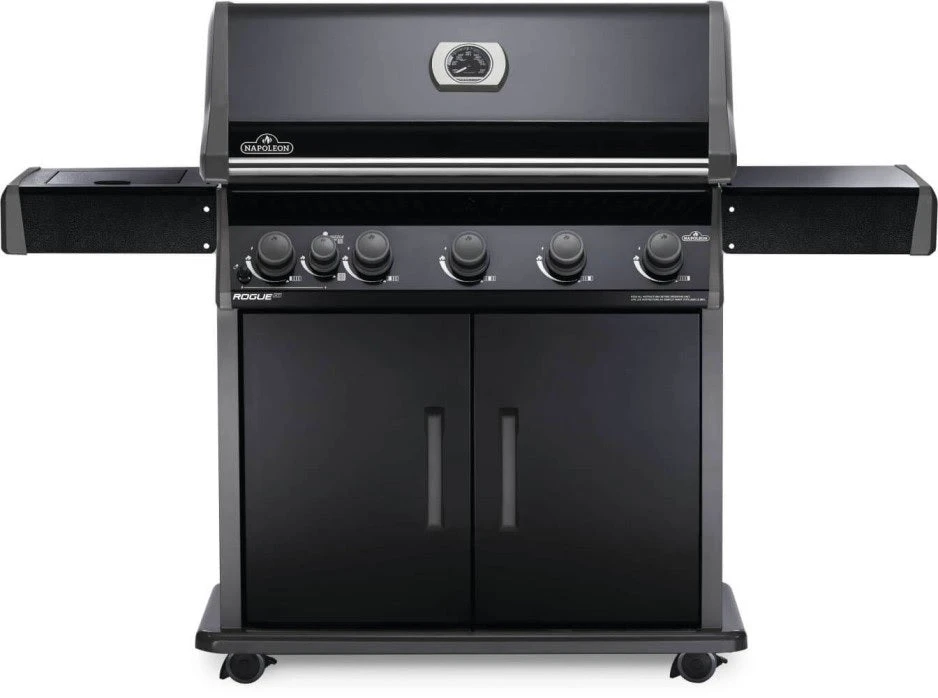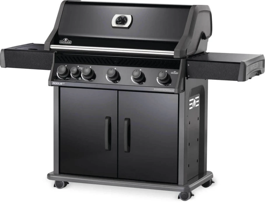 BBQ your way with this high-quality Rogue® XT Grill with Infrared Side Burner in black is a versatile addition to any backyard. This Napoleon grill is made from durable stainless steel and features folding side shelves for extra space. Inside, dual level sear plates vaporize drips and five tube burners light instantly with the JETFIRE™ ignition system.