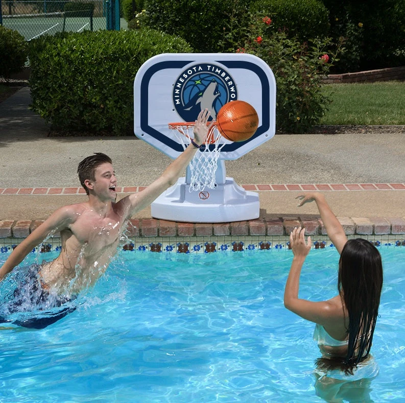 Featuring your favorite NBA team, the Minnesota Timberwolves, this deluxe poolside basketball game is perfect for basketball enthusiasts or novices alike. Durable all-weather materials, including 16″ aluminum hoop, polyethylene net and regulation-size nylon-wound ball, will give you years and years of poolside play and enjoyment.