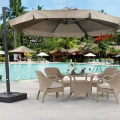 13′ Starlux Collar Tilt Market Umbrella In A Bronze Frame With A Sahara Stripe Canopy