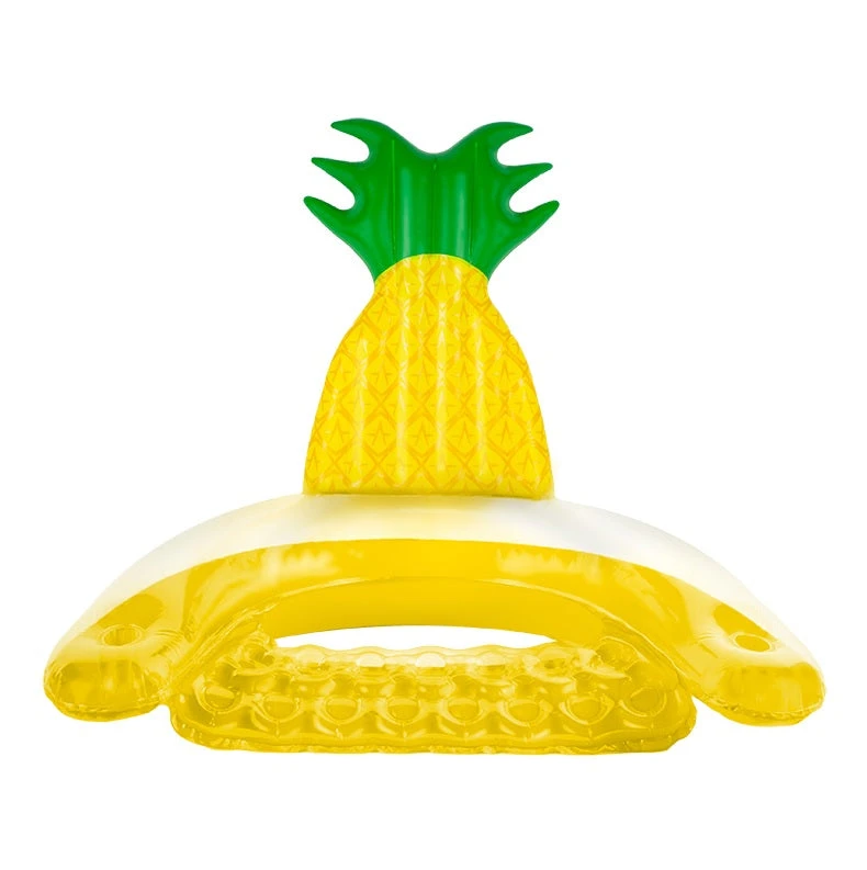 Trendy and fun inflatable floats never go out of style! Selfie-certified, this Pineapple Sling Chair is sweet and juicy and ready to be noticed. Add a pop of color to any pool or lake! Generous in size, the horse-shoe shaped back/arm rest is supportive and will keep you sitting comfortably while the inflated sling-style center seat keeps you semi-submerged and super cool. Bring your favorite beverage to sip on and rest it in one of the two integrated beverage pockets… use the other to store your sunblock.