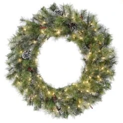30″ Frosted Pre-Lit Verona Wreath With Pine Cones And Berries
