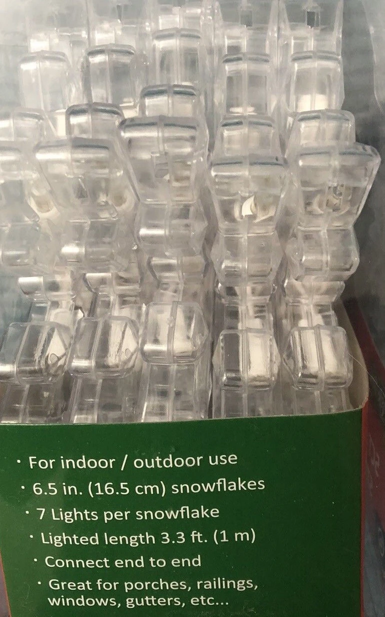 These snowflake lights are great for porches, railings, windows, gutters, etc.