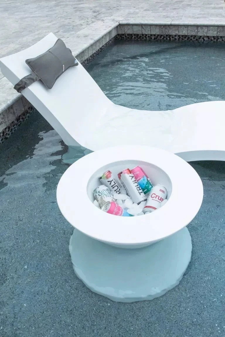 The Signature Tall Ice Bin Side Table from Ledge Lounger combines the functionality of an ice basin and the sleekness of the standard side table. This table can hold up to 10 cans of your favorite beverage, has a removeable lid option and can be used on your ledge or deck.