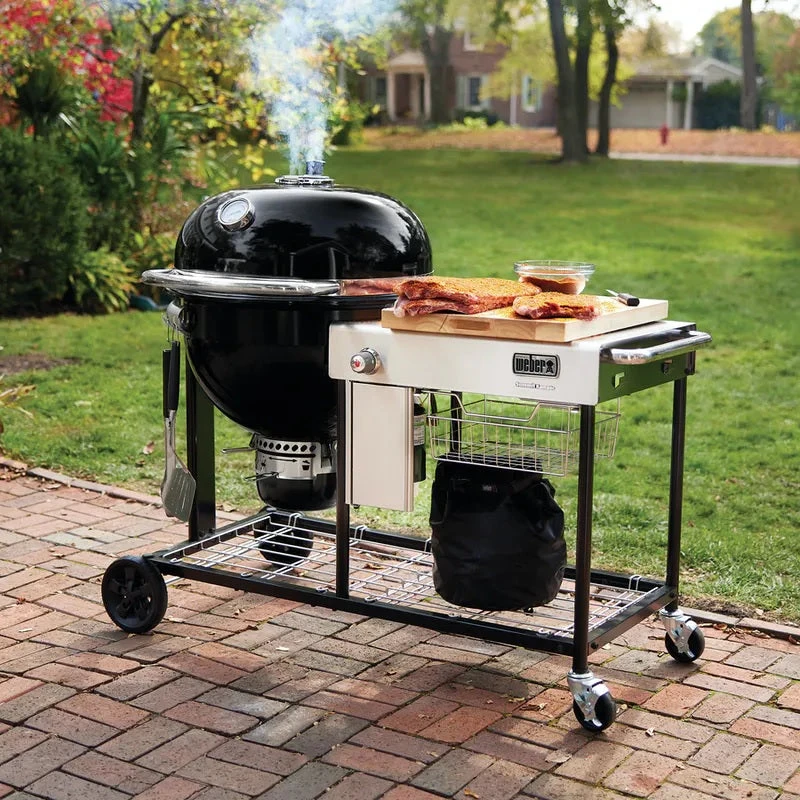 The durable, dual-walled insulated steel and unlimited potential of the Summit® Kamado S6 Charcoal Grill Center from Weber lands it in a class of its own. It quickly reaches desired temperatures, maintains heat for all-day smoking, and the gas ignition makes lighting charcoal as easy as pushing a button. Feeding a crowd? With an extra-large 24” cooking area, Summit® Kamado is ready to handle any size feast. And simply reposition its grate to transform your Kamado into an every-day charcoal grill to sear steaks, grill chicken, smoke fish, and anything else you’re serving at the BBQ.